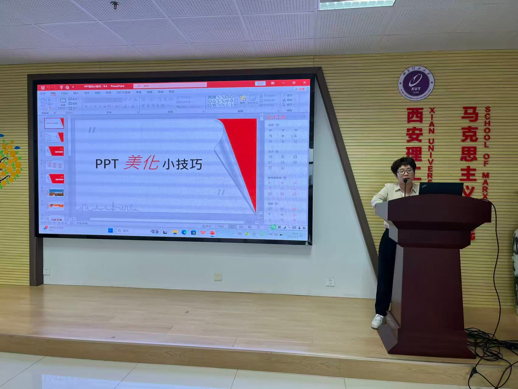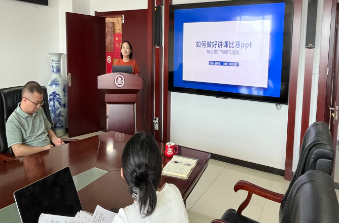 培训首先从教学课件设计入手。景月楼老师以“如何做好讲课比赛ppt——核心技巧和细节指南”为主题,聚焦课件制作,从色彩搭配、图文布局到动画效果逐一剖析,强调课件需注重整体风格统一,确保每一页幻灯片都服务于教学目标,同时分享简洁版式、精准图表的设计技巧,助力提升课件专业性与可读性。