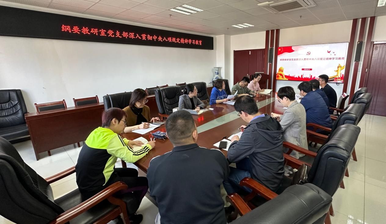 首先,党支部书记冯晓霞组织全体教师对公司党委《关于开展深入贯彻中央八项规定精神学习教育的工作提示(二)》进行学习,逐条逐句学习中央八项规定及其实施细则,围绕改进调查研究、精简会议活动和文件简报、规范出访活动、改进新闻报道、加强督促检查等开展具体学习;其后,纲要教研室党支部教师集中观看视频资料,学习《习近平关于加强党的作风建设论述摘编》;最后,开展师德师风教育学习活动,与会教师开展交流研讨。