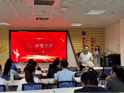 随后,评委老师们对各位选手的精彩表现进行了细致点评。黑晓卉老师指出,微党课不仅要有深刻的思想性,还须具备丰富的内容,选手们要精心设计导入环节以增强微党课的吸引力和感染力。郭雪老师强调,选手们应在选题上精心打磨,深入挖掘选题的独特价值与内涵,确保选题既具有时代意义,又能精准契合微党课的主题要求。陈文林老师对选手们的前期准备和现场表现给予了高度肯定,并针对每位选手的作品提出了具体的优化建议,他希望大家能够继续认真打磨作品,进一步提升微党课的质量。