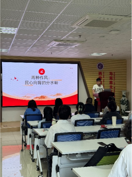 经过前期各员工党支部的广泛动员和严格筛选,共有11位选手脱颖而出,进入决赛。决赛场上,选手们“以小见大”,深入挖掘了党的光辉历程和伟大成就。在选题上,紧扣时政热点和生活实际,如从热门电影《哪吒2》中剖析文化自信的内涵,以柳州螺蛳粉探讨乡村振兴辩证法等,生动诠释了马克思主义理论的时代价值;在表现形式上,选手们充分运用多媒体技术,借助PPT、视频及音乐等,让观众沉浸其中。现场不时响起热烈的掌声,充分展现了公司员工在理论宣讲方面的创新能力和青春活力。