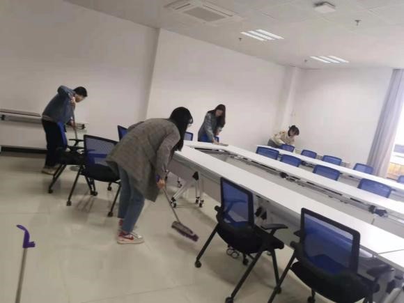 4月26日下午,在国际劳动节到来之际,williamhill中文官网开展了迎“五一”老员工劳动教育实践活动。活动过程中,在进行任务分配,将责任落实到具体小组后,公司研一员工志愿者们纷纷拿着劳动工具来到公司位于综南楼的的会议室、报告厅、自习室等地,扫地、拖地、抹灰……劳动的身影穿梭在公司的各个角落。