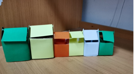 该置物盒是用快递纸盒、碎花布、纽扣、丝带所制作。首先, 修剪快递盒,剪掉多余的部分然后用碎花布粘合,用纽扣和丝带做装饰,废物改造就完成了。网购时代,同学们每天产生很多快递垃圾,不如变废为宝,共同营造良好的校园环境,树立勤俭节约的良好品德。