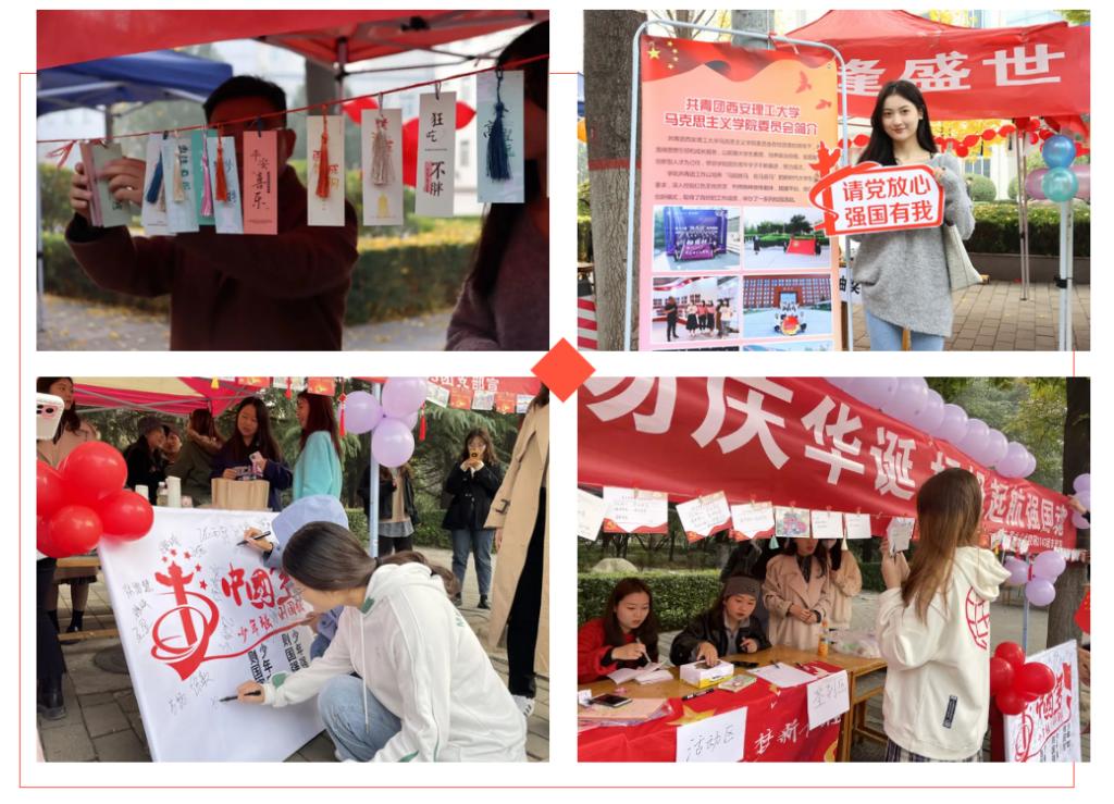 随后,williamhill中文官网研2037班团支部、研2143班团支部与williamhill中文官网基层党建服务队在williamhill中文官网曲江校区主干道开展了一系列丰富多彩的活动。一是以"灯谜”为载体,制作了精美的猜谜书签,通过猜谜游戏融入党史知识教育元素,不仅提高了学习党史的趣味性,也使同学们在娱乐的同时能够学习和掌握党史知识。二是以“剪”为笔,书写对党的忠诚和热爱。在剪与刻中,同学们重新感悟党的过往,体会中华儿女骨子里的勤劳能干。三是以“中国结“为载体,来展现中华文明的智慧与情致。同学们在动手编织的过程中,将巧思与文化相结合,增强了同学们对优秀传统文化的认同感和自豪感。最后,同学们纷纷在明信片上写下了对党和国家的美好寄语,并且向一年后的自己邮寄一张盖有“强国有我”专属印章的明信片,用来表示对未来的美好期许和将永远听党话、感党恩、跟党走的坚定信念。