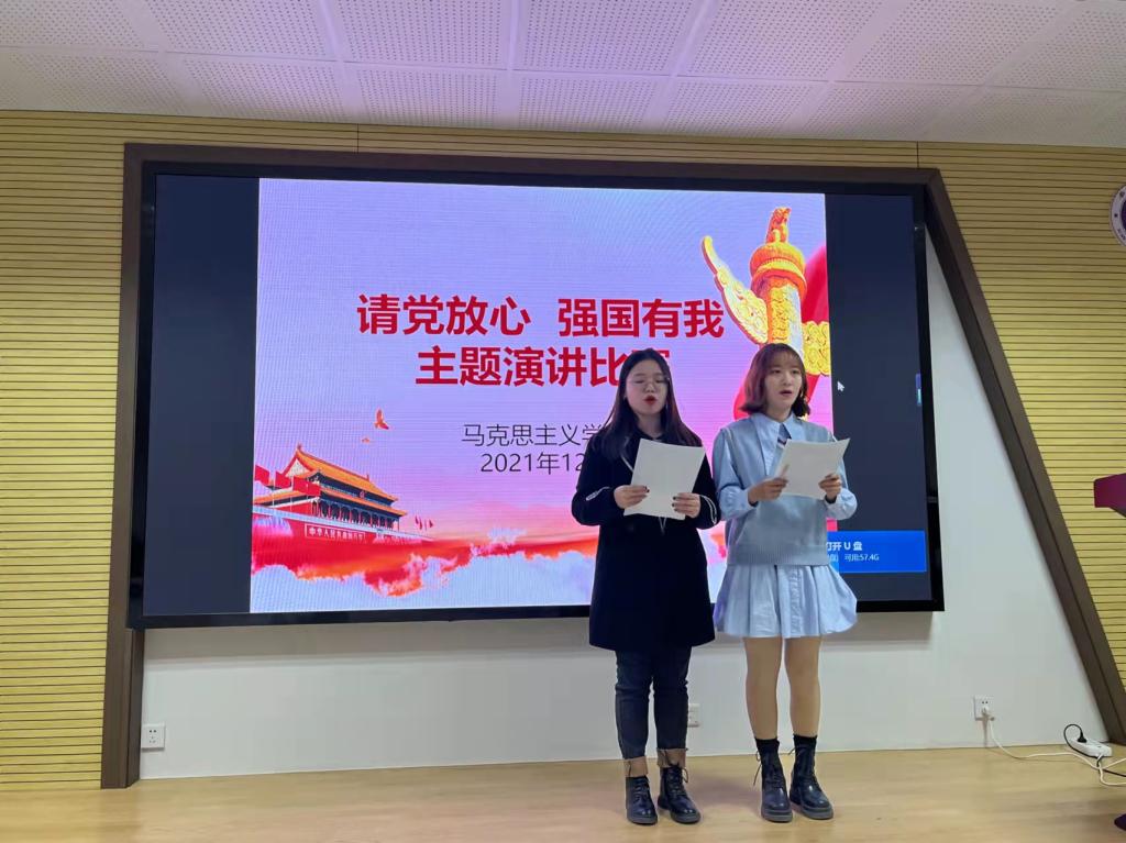 12月7日,williamhill中文官网在综南楼911报告厅举办“请党放心,强国有我”主题演讲比赛,此次比赛邀请院团委书记王梦,辅导员王莹担任评委,公司部分员工观看了比赛。