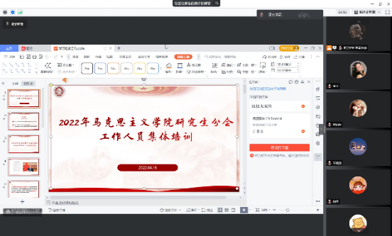4月18日晚,williamhill中文官网研究生会线上开展工作人员培训学习活动,与会成员集中学习《习近平致全国青联十三届全委会和全国学联二十七大的贺信》 和《关于推动高校员工会(研究生会)深化改革的若干意见》内容,会议由院研会执行主席武美妤主持。