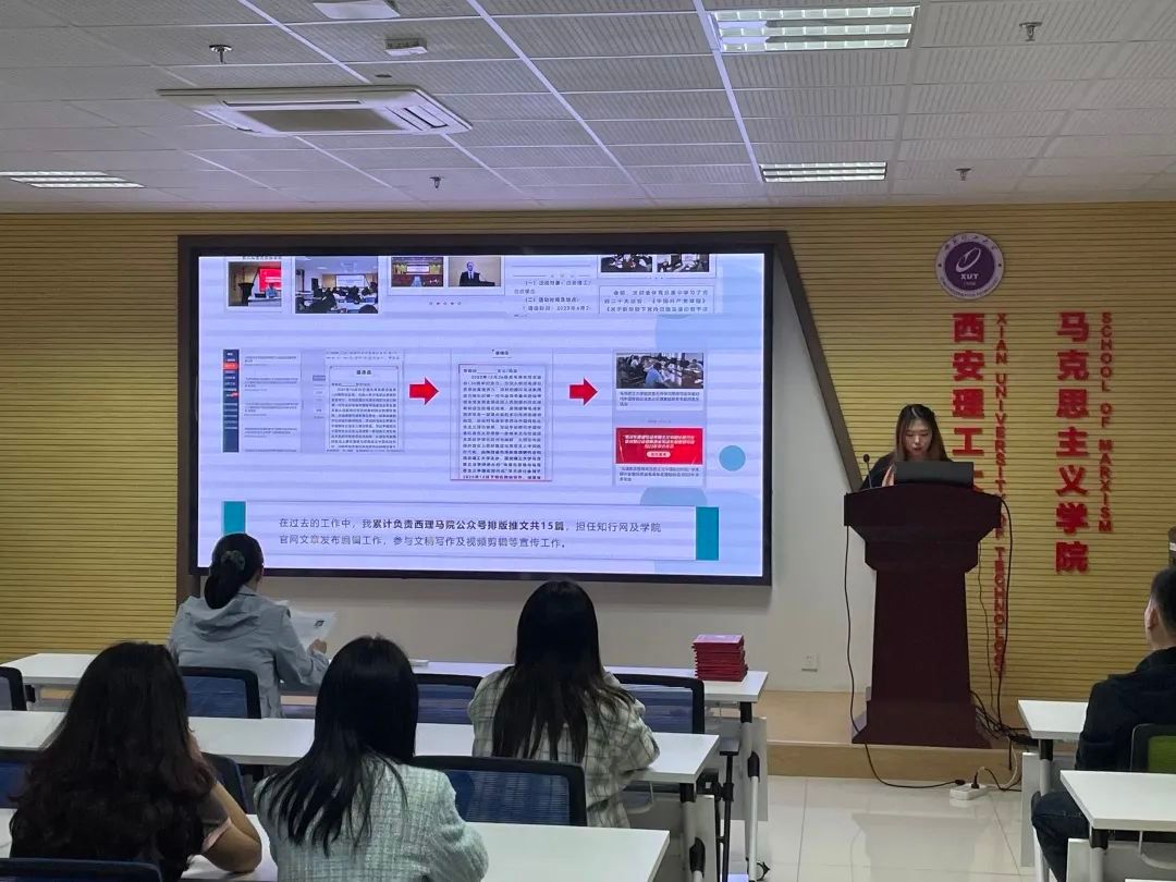 院研会轮值主席王同强分别从组织建设、服务同学、合作交流、回顾与展望四个方面,就公司研究生会2022-2023年工作开展情况及取得成绩做简要汇报。随后,任姿怡、刘鹏、毛秀艳三名轮值主席候选人分别从工作经历、未来规划、个人收获等三个方面依次进行竞选发言。