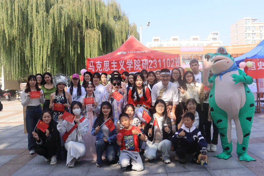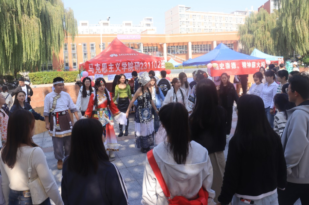 10月28日,团支部在公司三餐厅广场开展面向全校师生的“民族团结一家亲,同心共筑中国梦”主题活动。举办了各民族人像中国版图粘贴、少数民族特色游戏体验、少数民族服饰穿戴体验等丰富多彩的活动。中午时分,全体同学共唱《爱我中华》歌曲,同学们载歌载舞,吸引了过往师生们驻足观看,拍照打卡,活动赢得了在场师生的阵阵掌声与喝彩。
